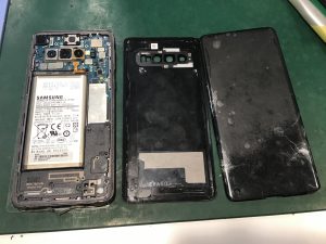 GalaxyS10(ギャラクシー) ガラスが割れ液晶表示不良にもなってしまったため、画面交換修理を行いました【スマホ修理工房秋津】