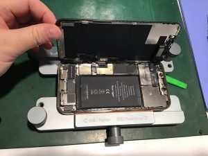 まずはiPhoneの画面を外していきます。この時、画面を割らないようにしっかりと画面を温め、慎重に外していきます!