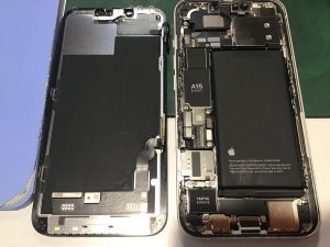 本日は、バッテリー持ちが悪くなってしまったというiPhone13をお持ち込みいただきました!そろそろ減りがはやくなってきたなぁ・・・と思っていませんか??