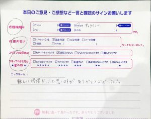 iPhone修理工房東村山秋津店です。今日はiPhone8のバッテリー交換でお越しのお客様からいただいたお声をご紹介します!