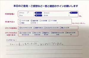 今回はiPhone8のバッテリー交換でご来店されたお客様から頂いたお声をご紹介します。