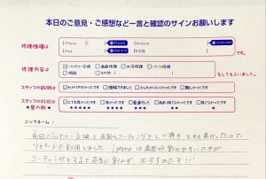 本日はiPhone8のバッテリー交換でお越しのお客様からいただいたお声をご紹介します!!