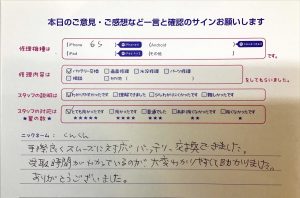 本日はiPhone7のバッテリー交換でお越しのお客様からいただいたお声をご紹介します!!