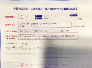 【iPhoneSE2の画面交換でお越しのお客様へのスタッフのコメント】