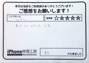 本日はiPhone修理でお越しのお客様から頂いた口コミを紹介致します。