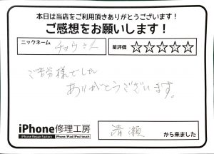 本日はiPhone修理でお越しのお客様から頂いた口コミをご紹介致します。