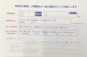 こんにちは!iPhone修理工房秋津店です。今回はご来店されたお客様から頂いたお声をご紹介します。