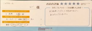 本日はiPhone修理でお越しのお客様から頂いた口コミをご紹介します。