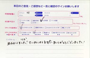 iPhone修理工房秋津店/iPhone11の水没修理のお客様からの口コミ