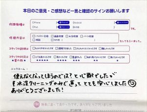 iPhone修理工房秋津店/iPhone8の水没修理のお客様からの口コミ
