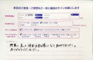 本日はiPhone11Pの水没修理でお越しのお客様からいただいたお声をご紹介します!!