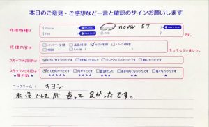 【iPhoneXの水没修理でお越しのま様へのスタッフのコメント】